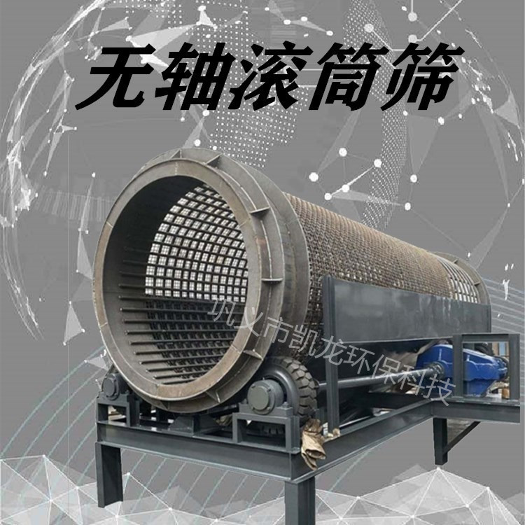 無軸滾筒篩具有功率小,能耗低,筒內有自清掃裝置,篩孔不易被堵塞;占用空間小,投資成本降低、運轉平穩可靠、篩分效率高、產量大;工藝布置簡便,安裝、維護方便,操作方便等特點。同時對物料的適應能力強,粘性、濕度大、臟、雜等各種性質的物料都能篩分,進料方式多樣化,即人工方式和機械傳動,能大批量生產,篩網采用環狀扁鋼圈設計,耐磨性好,使用壽命長,結構簡單,維修方便。