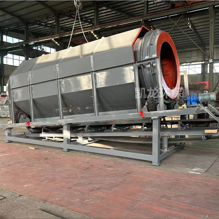 無軸滾筒篩是分選技術中應用非常廣泛的一種機械,是通過對顆粒粒徑大小來控制垃圾分選的,分選精度高。滾筒篩的筒體一般分幾段,可視具體情況而定,篩孔由小到大排列,每一段上的篩孔孔徑相同。