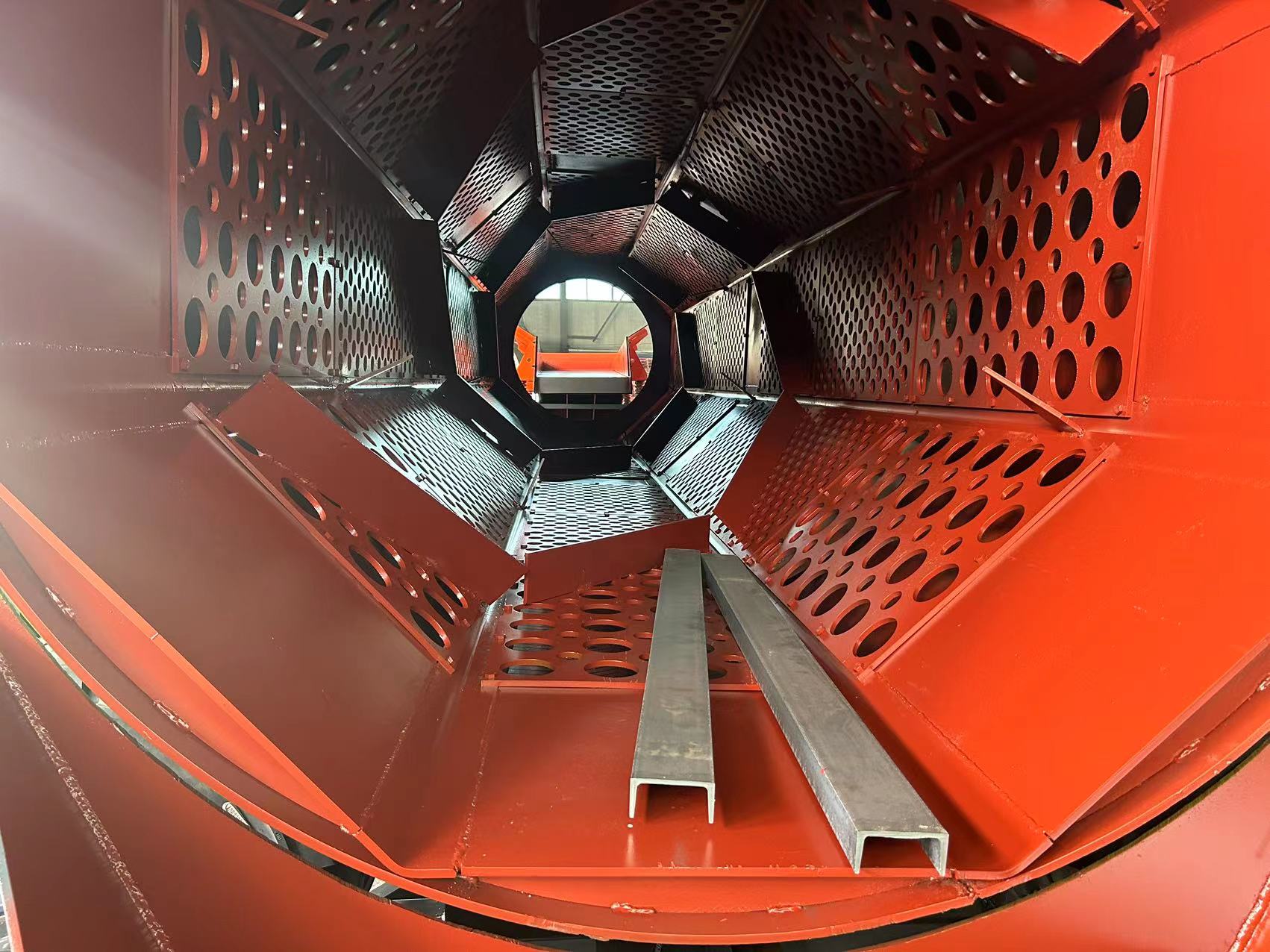 無(wú)軸滾筒篩是由若干個(gè)圓形狀篩網(wǎng)組成,整體與地平面成傾斜狀態(tài),外部被密封隔離罩所密封,以防止污染環(huán)境。通過(guò)變速減速系統(tǒng)使篩分筒在一定轉(zhuǎn)速下旋轉(zhuǎn),物料自上而下通過(guò)篩分筒得到分離,細(xì)料從篩分筒前端下部排出,粗料從篩分筒下端尾部排出。滾筒篩(圓筒回轉(zhuǎn)篩)可設(shè)有梳形清篩機(jī)構(gòu),在篩分過(guò)程中可通過(guò)梳形清篩機(jī)構(gòu)與篩分筒的相對(duì)運(yùn)動(dòng),達(dá)到對(duì)篩體不問(wèn)斷清理的效果,使篩分筒在整個(gè)工作過(guò)程中始終保持清結(jié)、不粘、不堵、不影響篩分效果。